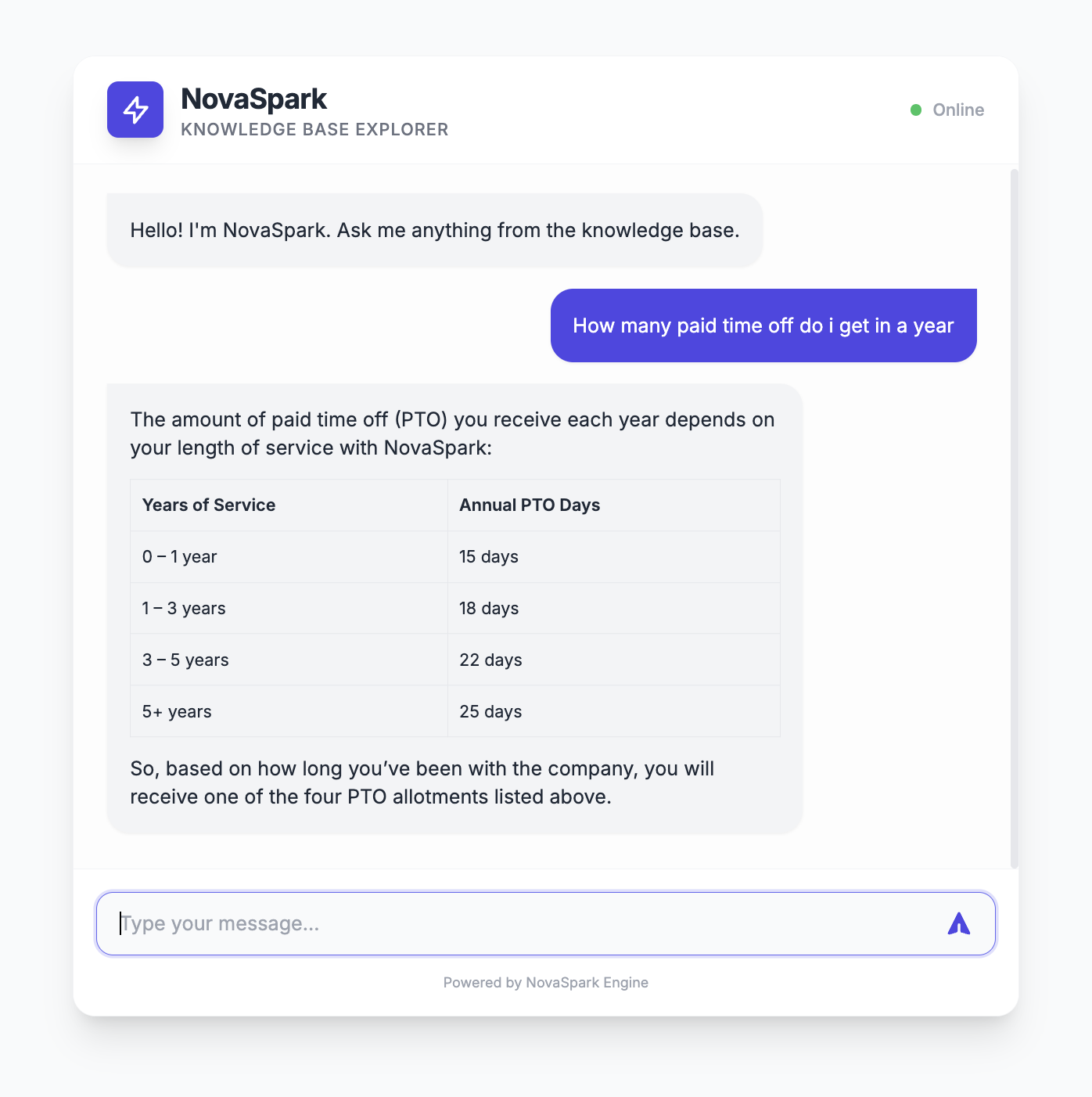 Instead of searching through PDFs or asking HR, users simply type a question: